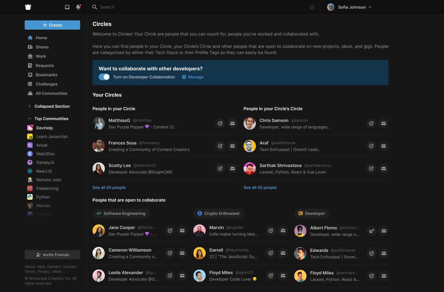 Build your Circle on Showwcase and use it to help you find new opportunities